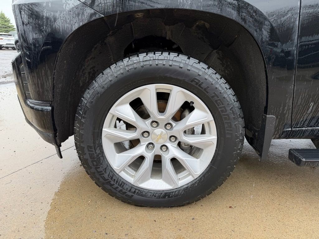 2021 Chevrolet Silverado 1500 Custom This 2021 Chevrolet Silverado 1500 Custom delivers the perfect balance of capability, technology, and everyday comfort. Built to handle tough jobs while keeping you connected on the road, this Silverado is equipped with a responsive 2.7L turbocharged engine paired with an Autotrac transfer case and an auto-locking rear differential for confident performance in a variety of driving conditions. Designed with functionality in mind, it features a trailering package with hitch guidance, Stabilitrak with trailer sway control, and hill start assist—making towing and hauling easier and more controlled. The durable cargo bed includes a Chevytec spray-on bedliner, 12 tie-downs, cargo rail protectors, and LED lighting, along with a convenient EZ Lift power lock and release tailgate. Inside, the cabin offers a practical and comfortable layout with a front 40/20/40 split-bench seat with covered armrest storage and a 60/40 folding rear bench seat. Power windows, remote start, remote keyless entry, and single-zone semi-automatic climate control add everyday convenience, while rubberized vinyl floor mats help protect against the elements. Technology is front and center with the Chevrolet Infotainment 3 system, featuring a 7-inch touchscreen, Bluetooth® audio streaming, voice command capability, and compatibility with Apple CarPlay and Android Auto. Additional highlights include a driver information center, multiple USB ports, and available 4G LTE Wi-Fi capability. On the exterior, this Silverado stands out with a body-color styling theme, 20-inch bright silver painted aluminum wheels, deep-tinted windows, and LED signature tail lamps. Power-adjustable heated mirrors, a rear-window defogger, and CornerStep rear bumper enhance both convenience and usability. Safety and security features include a rear vision camera, tire pressure monitoring system with fill alert, Teen Driver mode, and a content theft alarm system. Well-equipped and ready for work or play, this Silverado 1500 Custom is a dependable full-size truck that offers modern features, strong capability, and rugged style., 8-Speed Automatic, 4WD, Black Cloth.