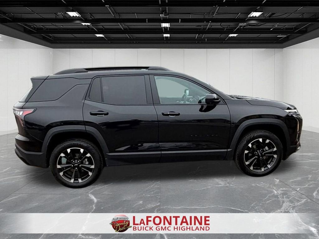 2025 Chevrolet Equinox RS Mosaic Black Metallic FWD 1.5L DOHCRecent Arrival! Clean CARFAX. CARFAX One Owner.• Safety and Technology Package with aerial view display system, backup camera, and fog lamps• Heated front seats for extra comfort in cold weather• Remote start lets you start the engine from outside the vehicle• Backup camera provides a clear view behind you when reversing• Keyless ignition allows you to start the car without inserting a key• Keyless entry lets you unlock the doors without using a traditional key• Built-in navigation system helps you find your way to your destination• Blind spot monitor warns you of vehicles in your blind spots• Bluetooth® connectivity allows for hands-free phone calls• GPS navigation gives turn-by-turn driving directions• Heated steering wheel keeps your hands warm on chilly days• Adaptive cruise control automatically adjusts your speed to maintain a safe distance from vehicles ahead• Apple CarPlay and Android Auto provide easy smartphone integration• Automatic emergency braking helps prevent or reduce the severity of a collision• Bluetooth® enables wireless audio streaming and phone calls• LED headlights provide bright, long-lasting illumination• Lane departure warning alerts you if you unintentionally drift out of your lane• Memory seat stores your preferred seating position settings• Navigation system gives you built-in map guidance• Rear cross traffic alert notifies you of approaching vehicles when backing upExperience peace of mind with LaFontaine's exclusive Collision Care program, ensuring you're supported when it matters most. Take advantage of our Tire Price Match Guarantee and drive confidently knowing you're getting the best deal. Plus, enjoy the added benefit of available Lifetime Alignments, keeping your vehicle performing at its best for years to come.